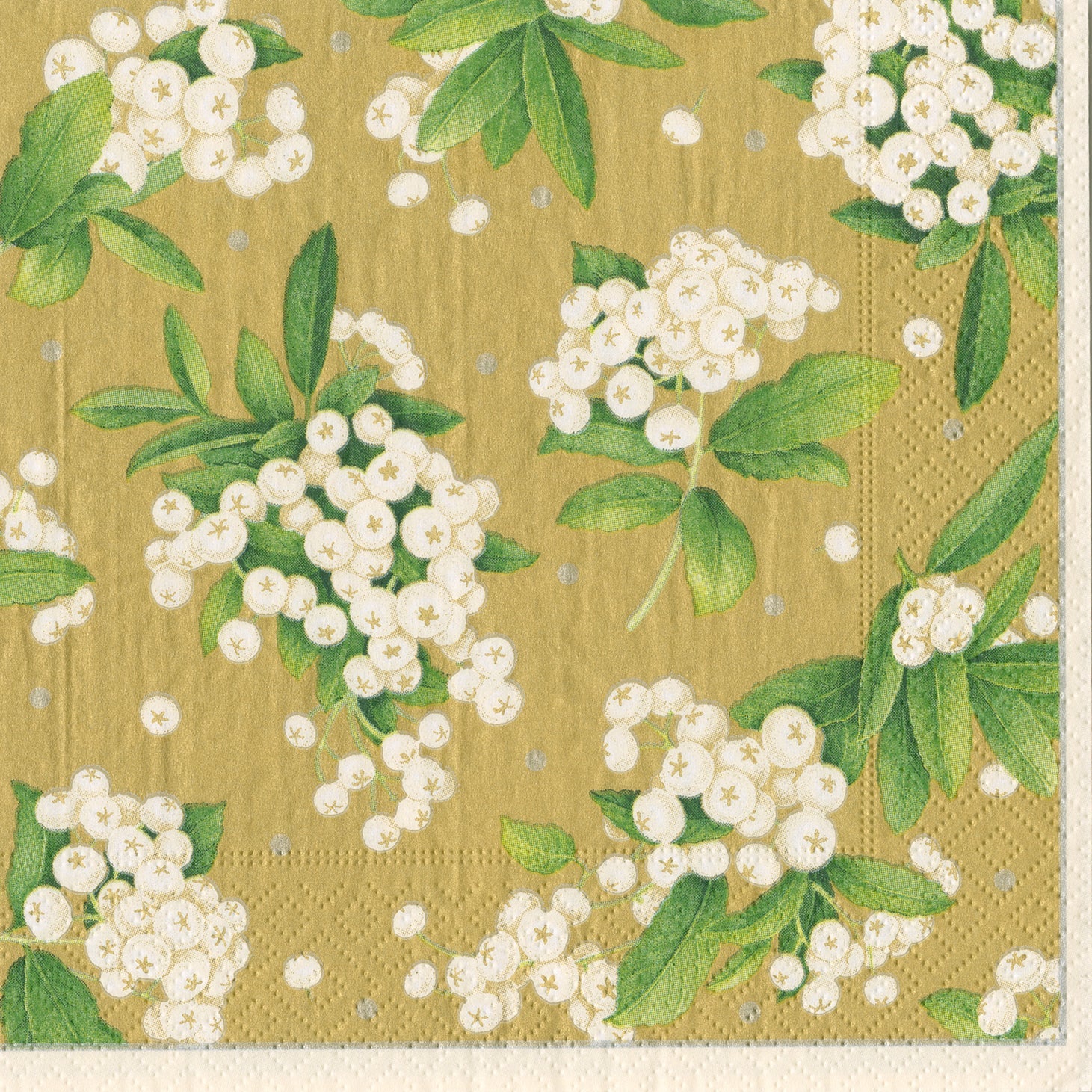 Christmas Berry Gold/White Cocktail Napkin By Caspari