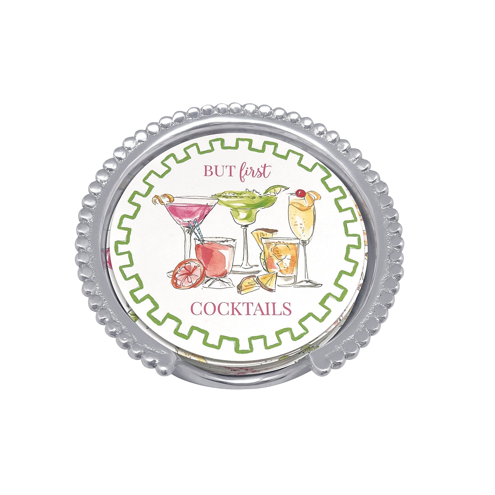 Elevate your tabletop with our But first…Cocktails Beaded Coaster Set, making every sip a celebration. Ideal for cocktail parties, happy hours, or any occasion that calls for a touch of mixology magic. Includes our Beaded Coaster Holder and a set of 40 4" reversible felt paper coasters. Refills sold separately.