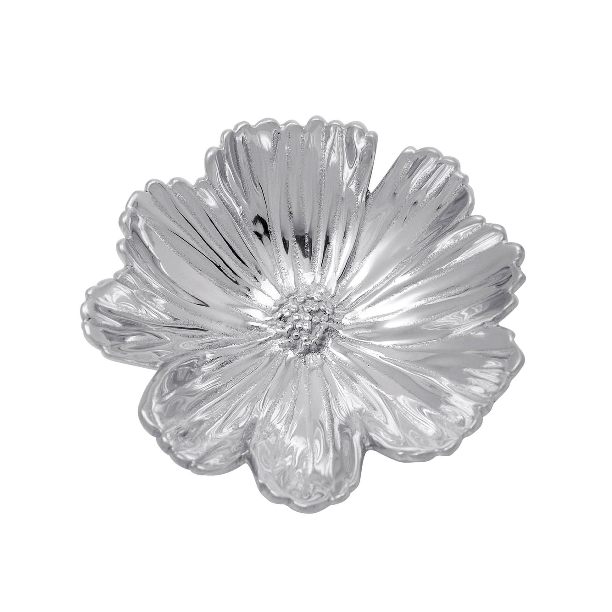 Inspired by the delicate beauty of cosmos flowers, The Cosmos Sauce Dish brings a hint of garden charm to your table. Perfect for side sauces, dips, and even small candies, its intricately crafted petal design and smooth finish make it both a decorative and practical addition. Handcrafted from 100% recycled aluminum.