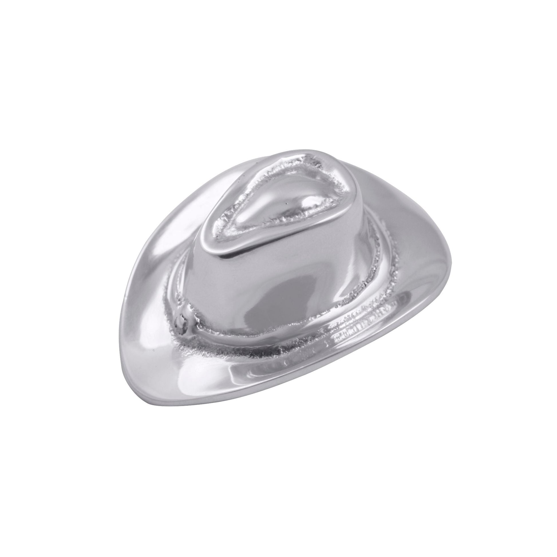 The Cowboy hat-shaped weight, crafted with intricate detail, adds a playful touch to your Western-themed gatherings or everyday décor. Whether you're hosting a rodeo-inspired event or sprucing up your kitchen, this napkin weight delivers a fun dash of Wild West style! Handcrafted from 100% recycled aluminum.