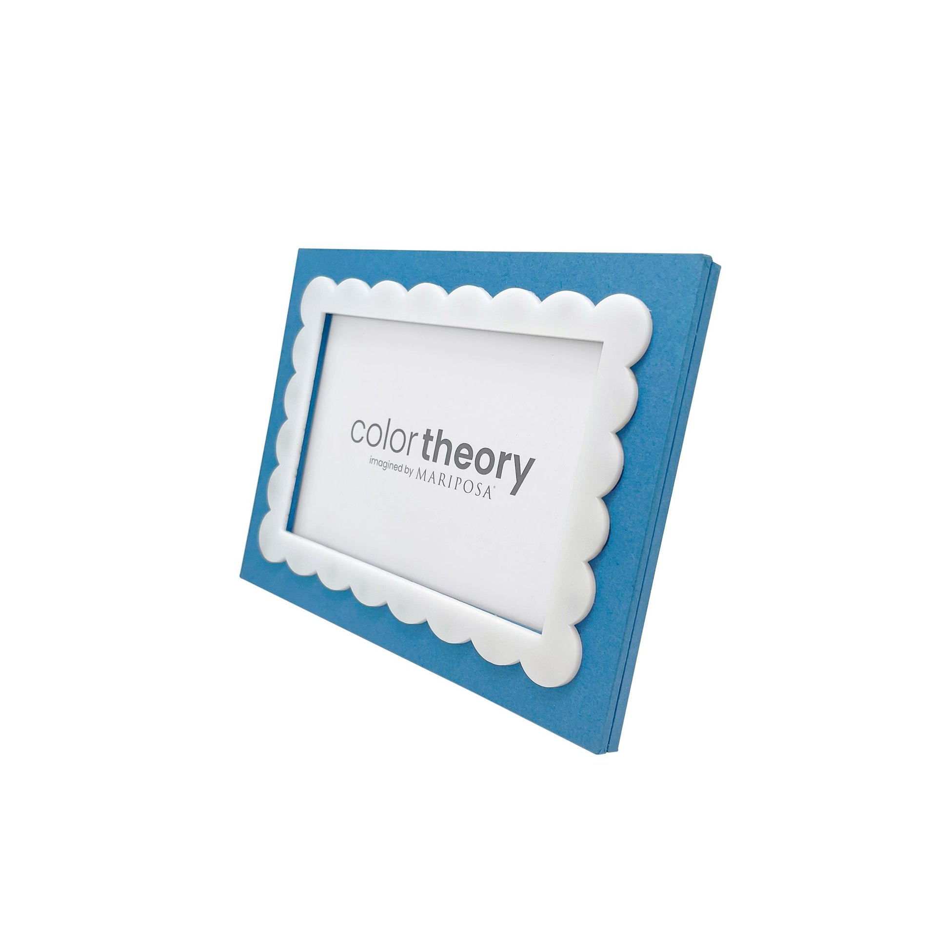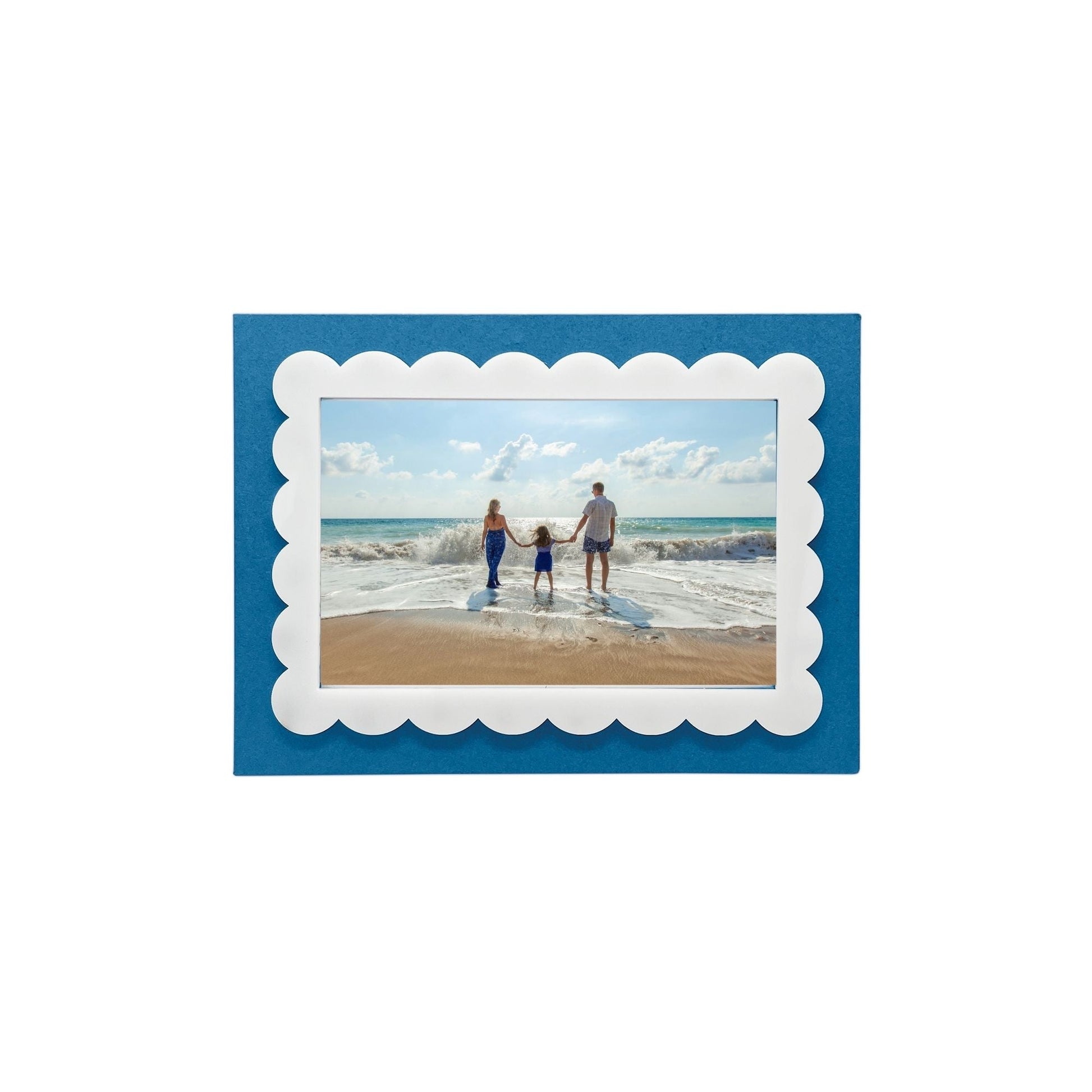 Sustainable style meets playful sophistication in our Color Theory. Crafted from recycled paper and finished with crisp white scalloped acrylic detailing, the Denim Blue Scallop 4x6 Frame brings a fresh, modern edge to your favorite memories. Its lightweight, eco-conscious design adds a touch of charm to any shelf or tabletop.