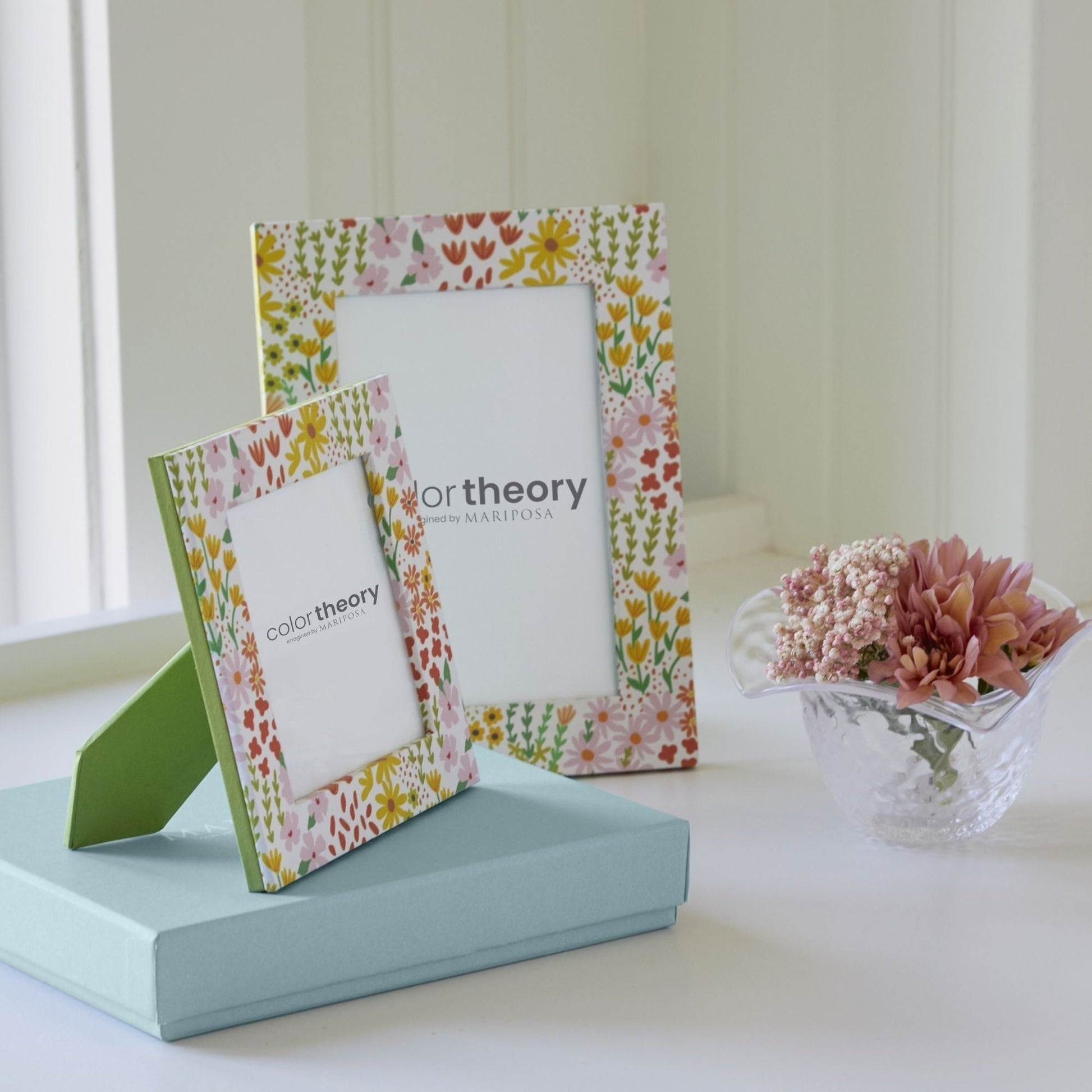 Featuring a delicate botanical print on the front and a pop of meadow green on the back, the Double Sided Botanical and Meadow 5x7 Frame captures the freshness of spring in every detail. Color Theory is a new slant on our fabulous frames that are meticulously crafted by hand from recycled paper.