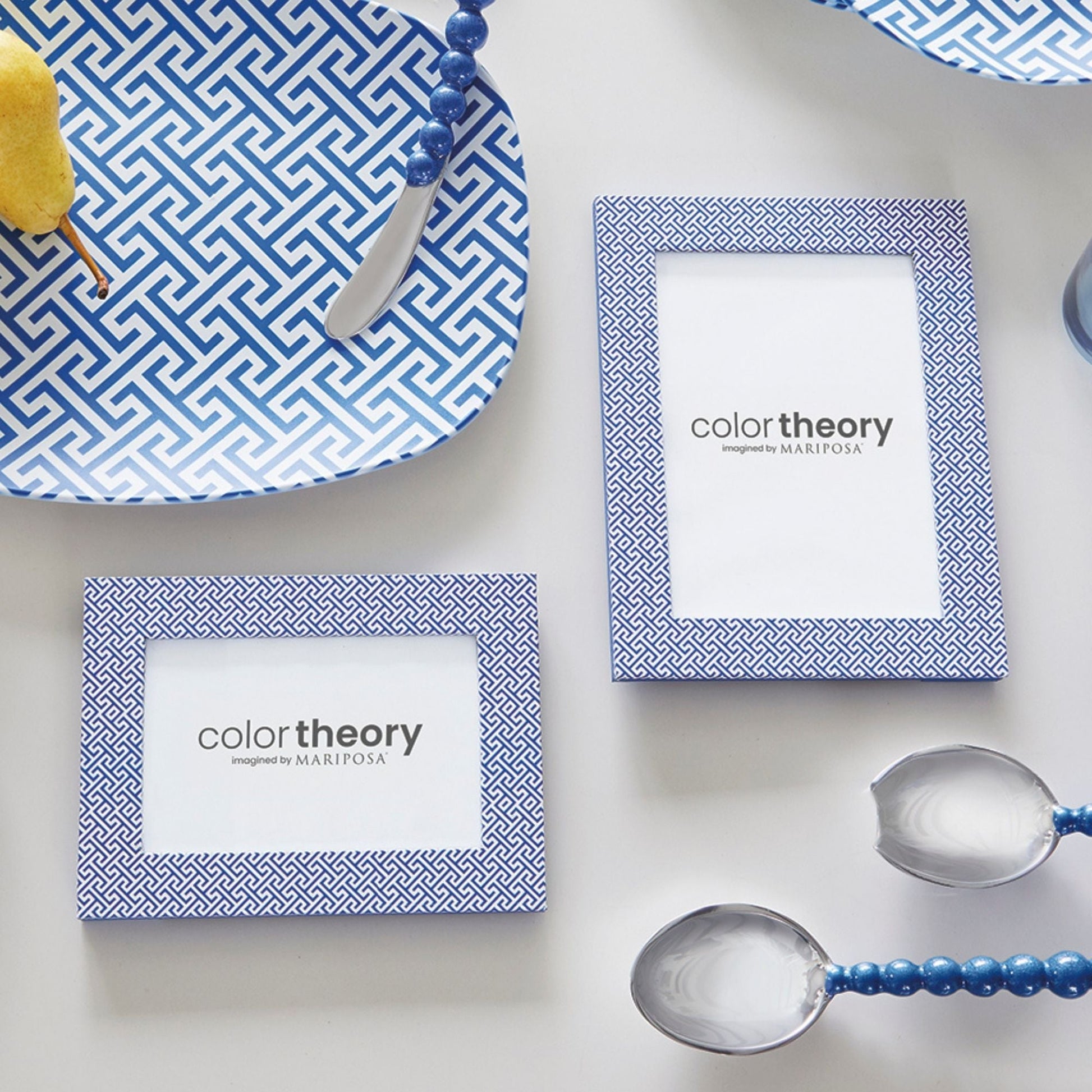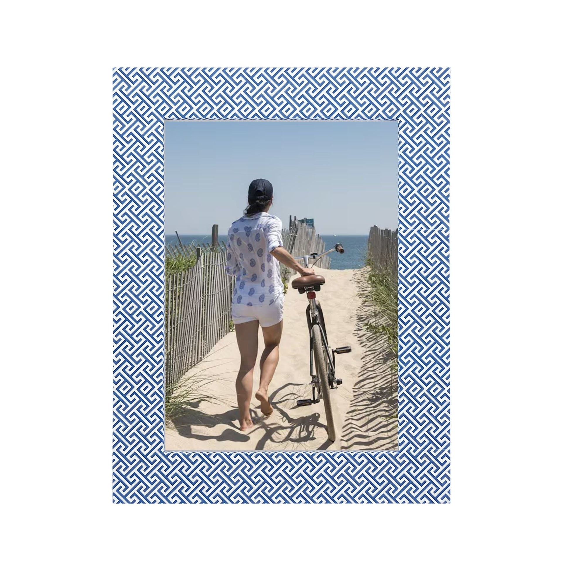 Timeless meets contemporary with our Double Sided Fretwork and Denim Blue 5x7 Frame. Its clean lines and crisp pattern make it a versatile accent for any room, perfectly suited to showcase a favorite photo. Handcrafted from recycled paper.