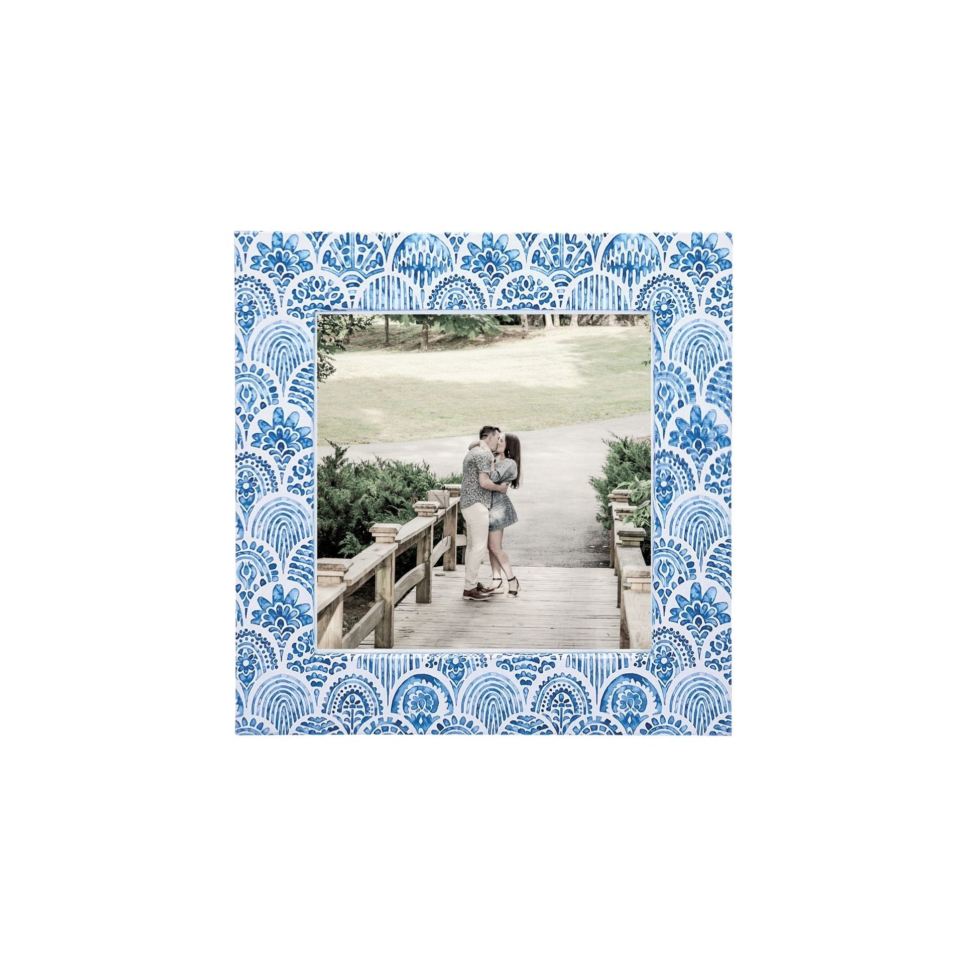 Inspired by the elegance of tile work, our Double Sided Moroccan Title Work and Periwinkle 4x4 Frame features an intricate pattern in shades of blue. It’s the perfect way to display a cherished photo—and a thoughtful gift for birthdays, housewarmings, or just because. Handcrafted from recycled paper.
