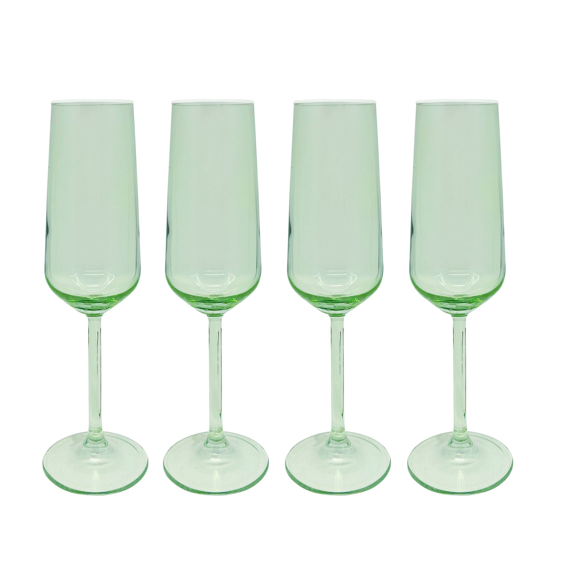 Fine Line Light Green with White Rim Champagne Flute Glass Set of 4