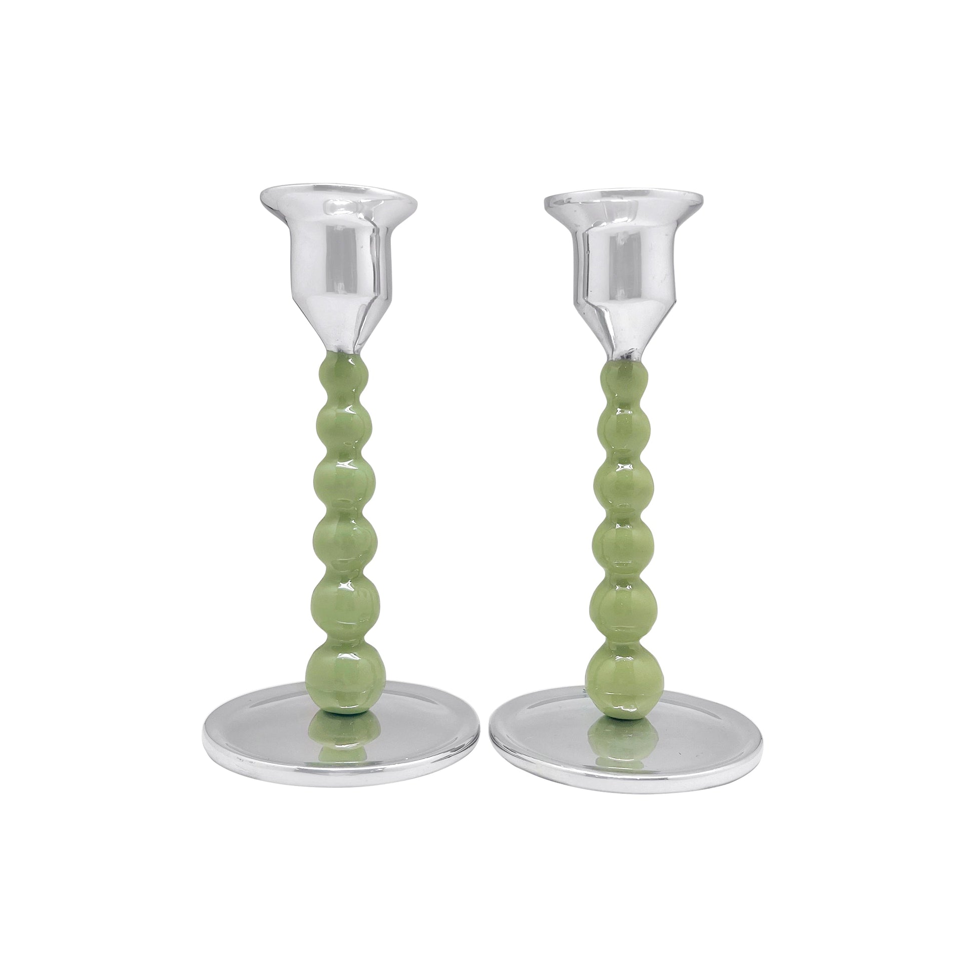 Transform your home into a haven of sophistication with our Pearled Green Small Candle Holder Set – where functional design meets timeless décor. Set includes 2 candle holders coated in green enamel for a fresh pop of color. Handcrafted from 100% recycled aluminum.