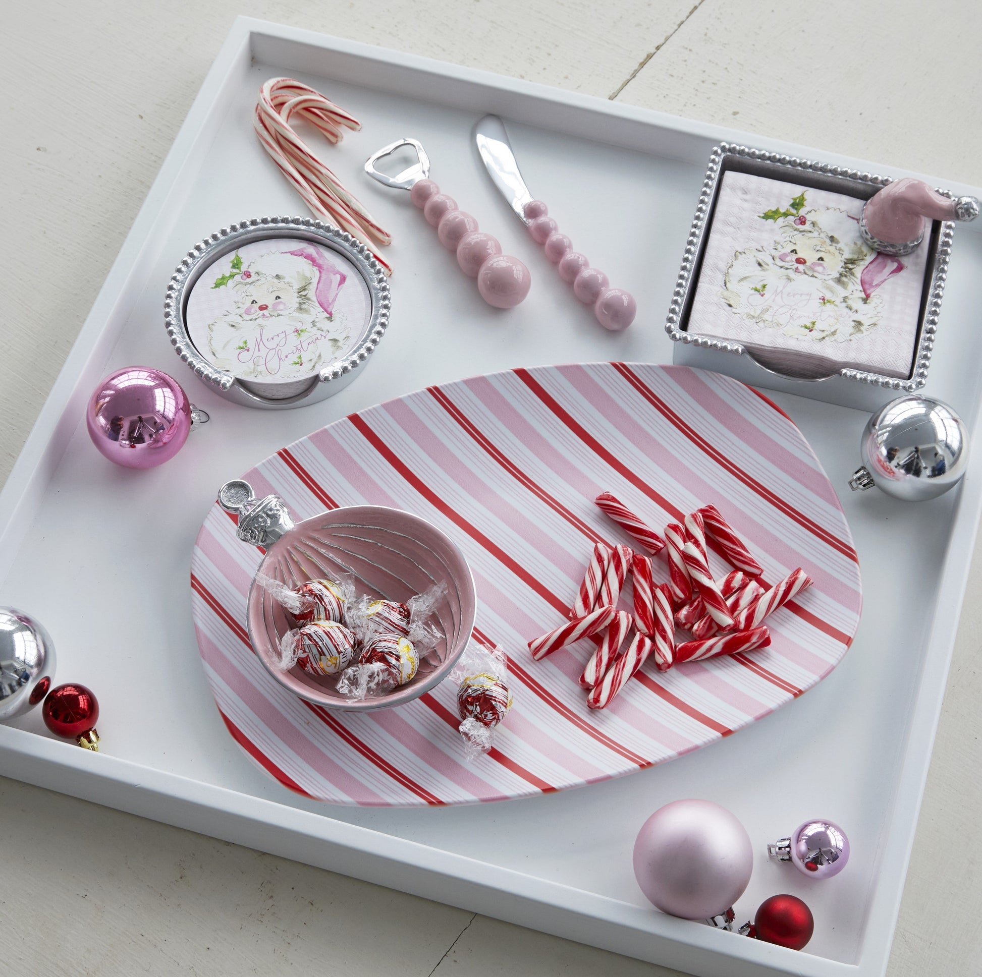 Mariposa has a love for entertaining. Crack open a bottle of beer with the style and luxury of the Pearled Pink Bottle Opener. Handcrafted from 100% recycled aluminum. Beautifully boxed in a Mariposa Gift Box - we make gifting easy!