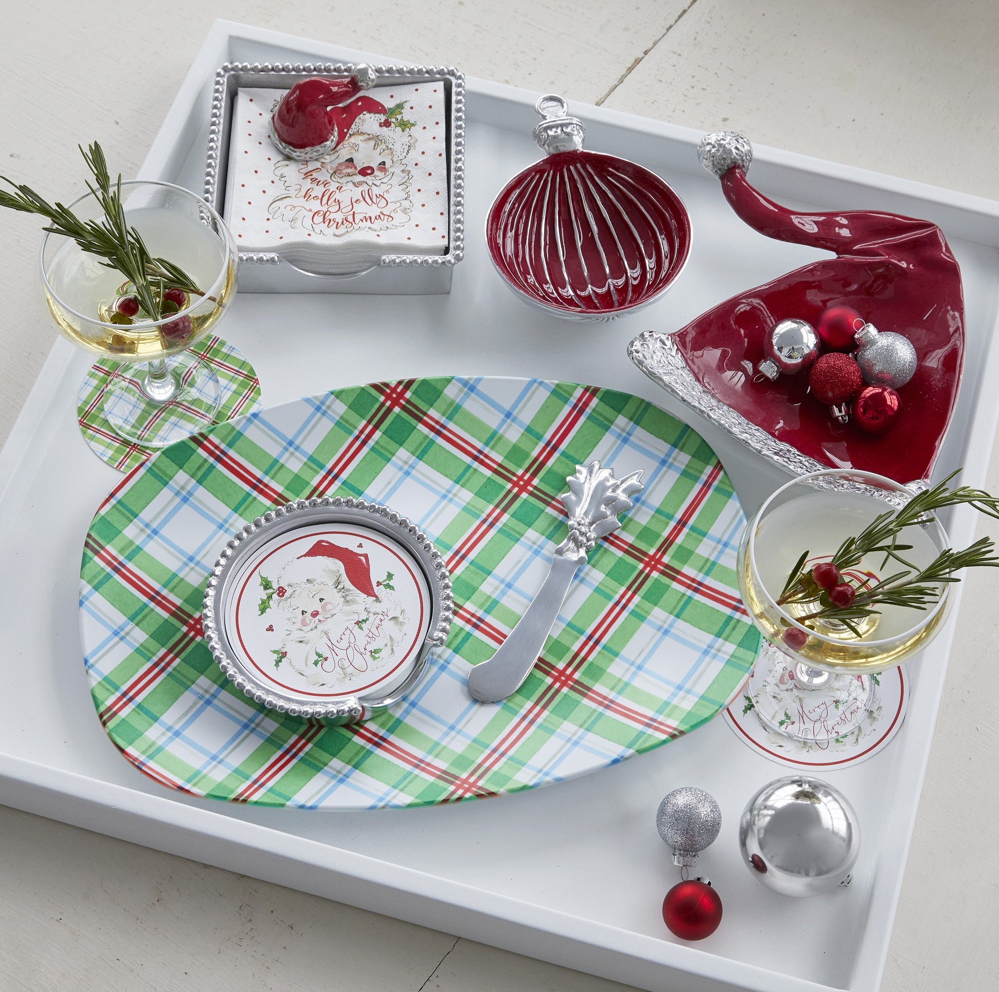 A festive Red Enamel Ornament Candy Dish adorned with silver trim adds a little winter magic to your next holiday party. Handcrafted from 100% Recycled Aluminum.