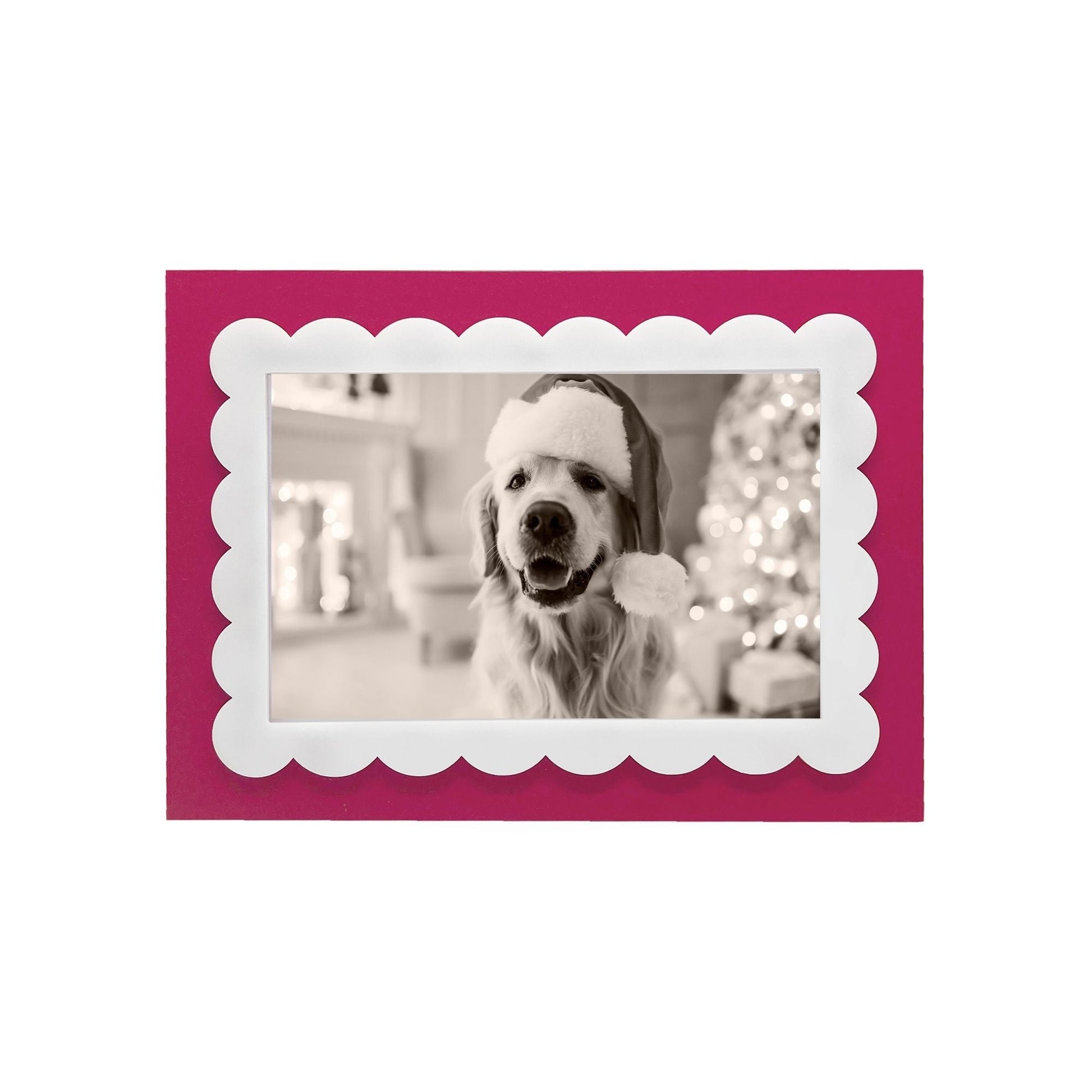 Sustainable style meets playful sophistication in our Color Theory. Crafted from recycled paper and finished with crisp white scalloped acrylic detailing, the Red White Scallop 4x6 Frame brings a fresh, modern edge to your favorite memories. Its lightweight, eco-conscious design adds a touch of charm to any shelf or tabletop.