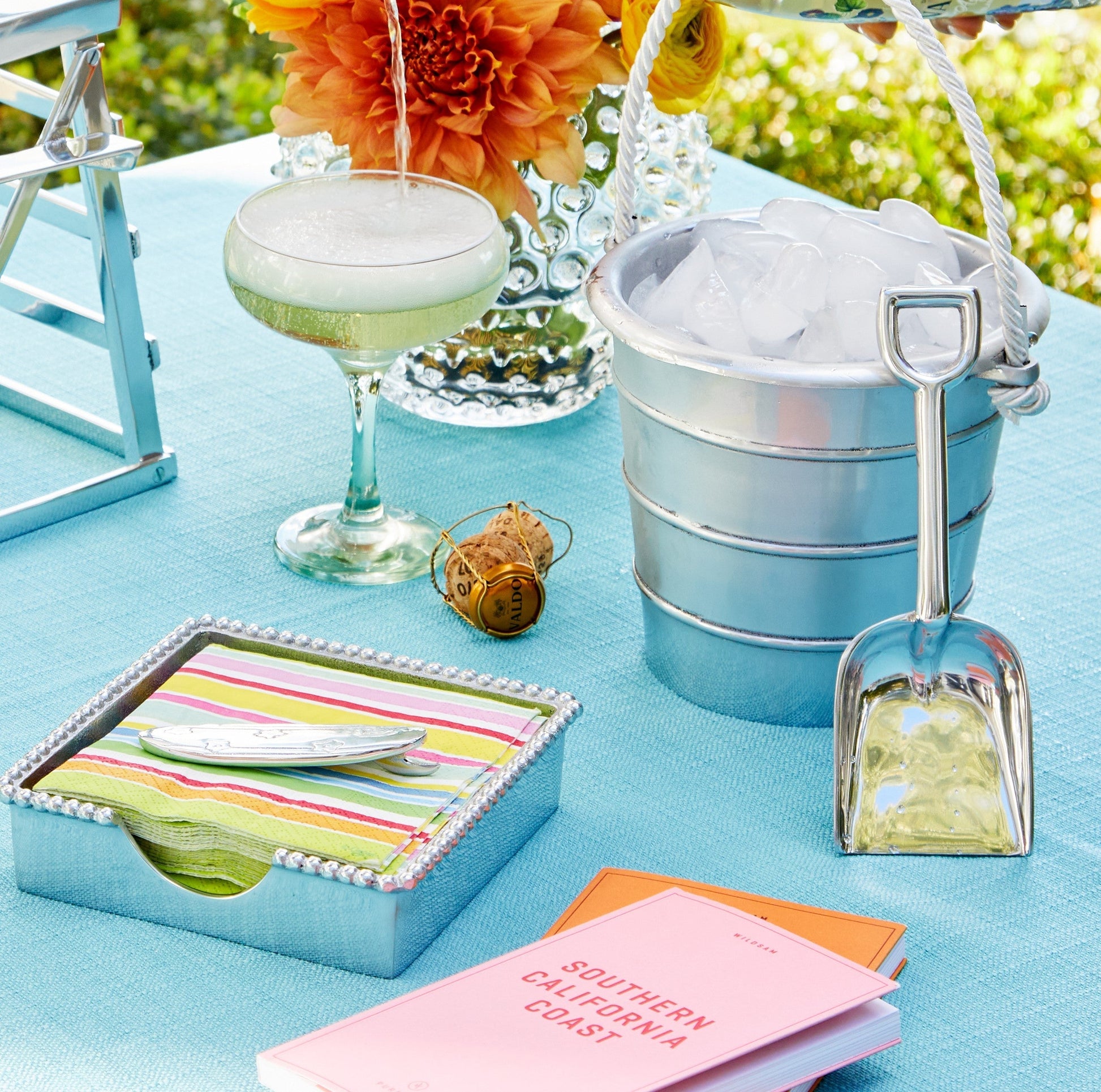 Ride the wave of style with our Surfboard Napkin Box Set! This playful set includes a vibrant cocktail napkin and sculpted surfboard, perfect for adding a splash of beachy fun to your dining table. Bring the surfside charm to your home and make every meal a seaside celebration! Handcrafted from 100% recycled aluminum.