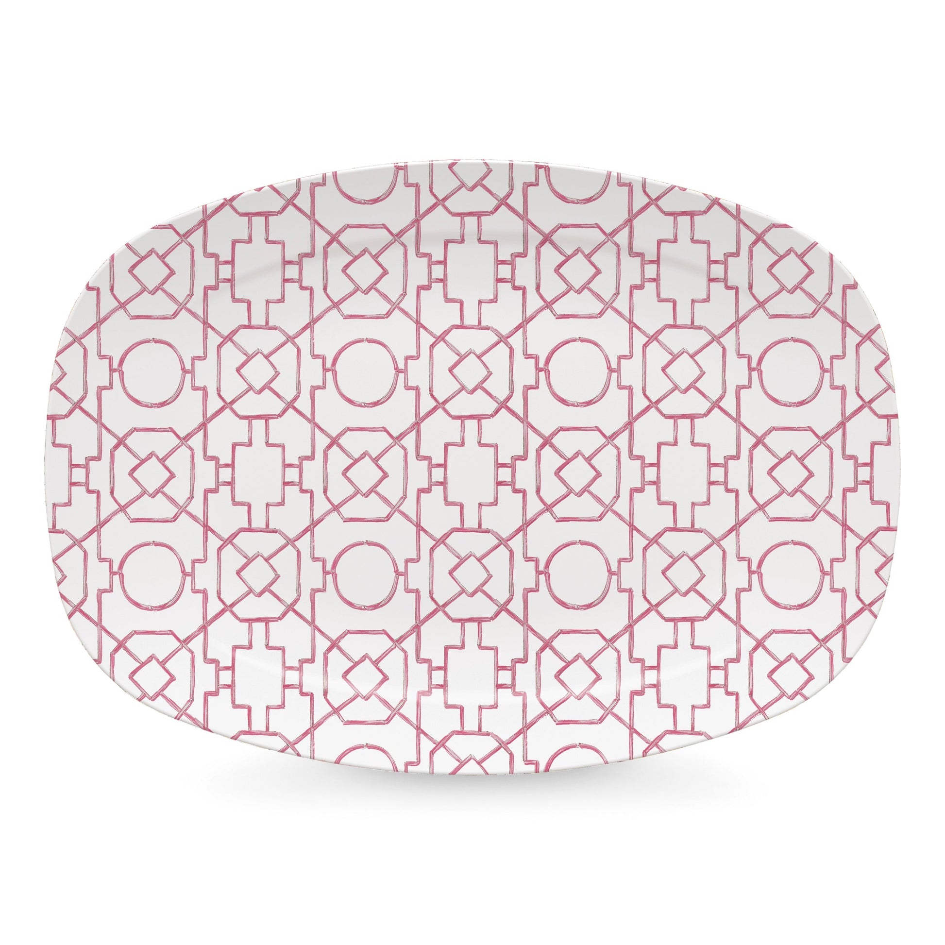 The Pink Trellis Platter features a classic trellis pattern, providing a touch of refined charm to your table setting. TRAYchic is like melamine, but better. Microwave, oven, and dishwasher safe. BPA-free, formaldehyde-free and FDA approved for food. Made exclusively in the USA.