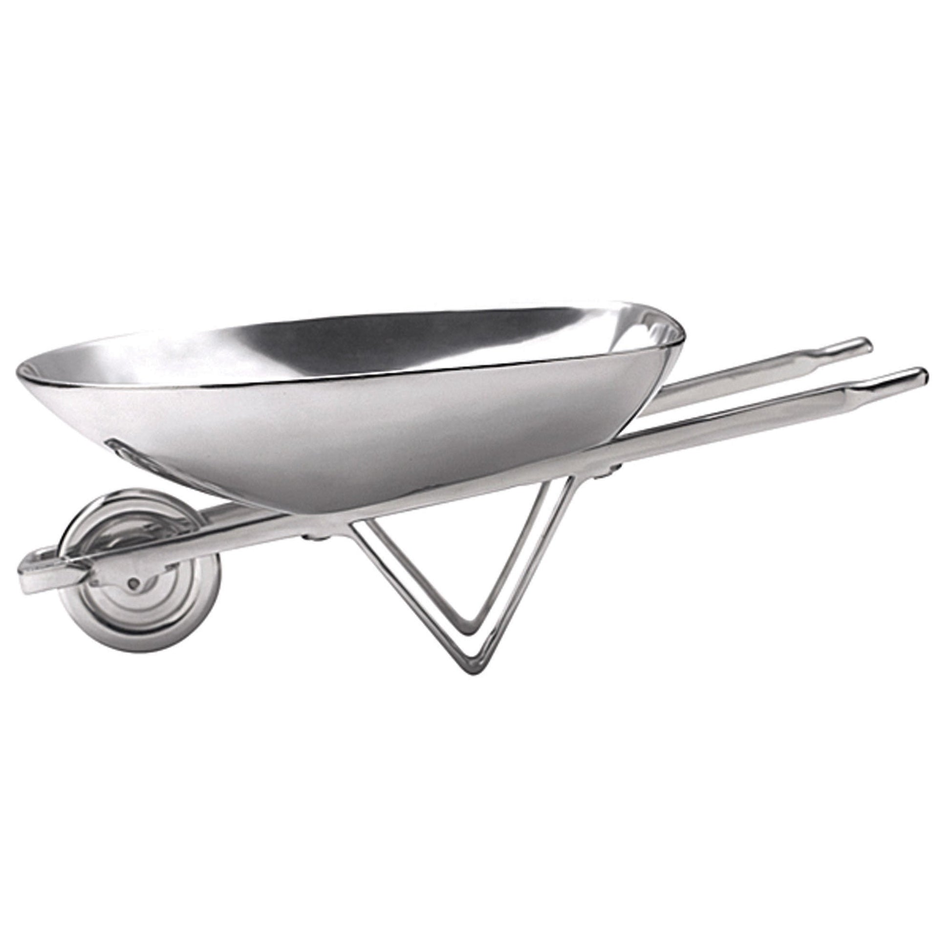 Serve in whimsical style with our Wheelbarrow Server. Perfect for holding desserts, salads, or appetizers, this charming piece brings the essence of a blossoming garden to your table. Crafted to resemble a vintage wheelbarrow with finely detailed handles and wheels, it’s as functional as it is eye-catching. Handcrafted from 100% recycled aluminum.