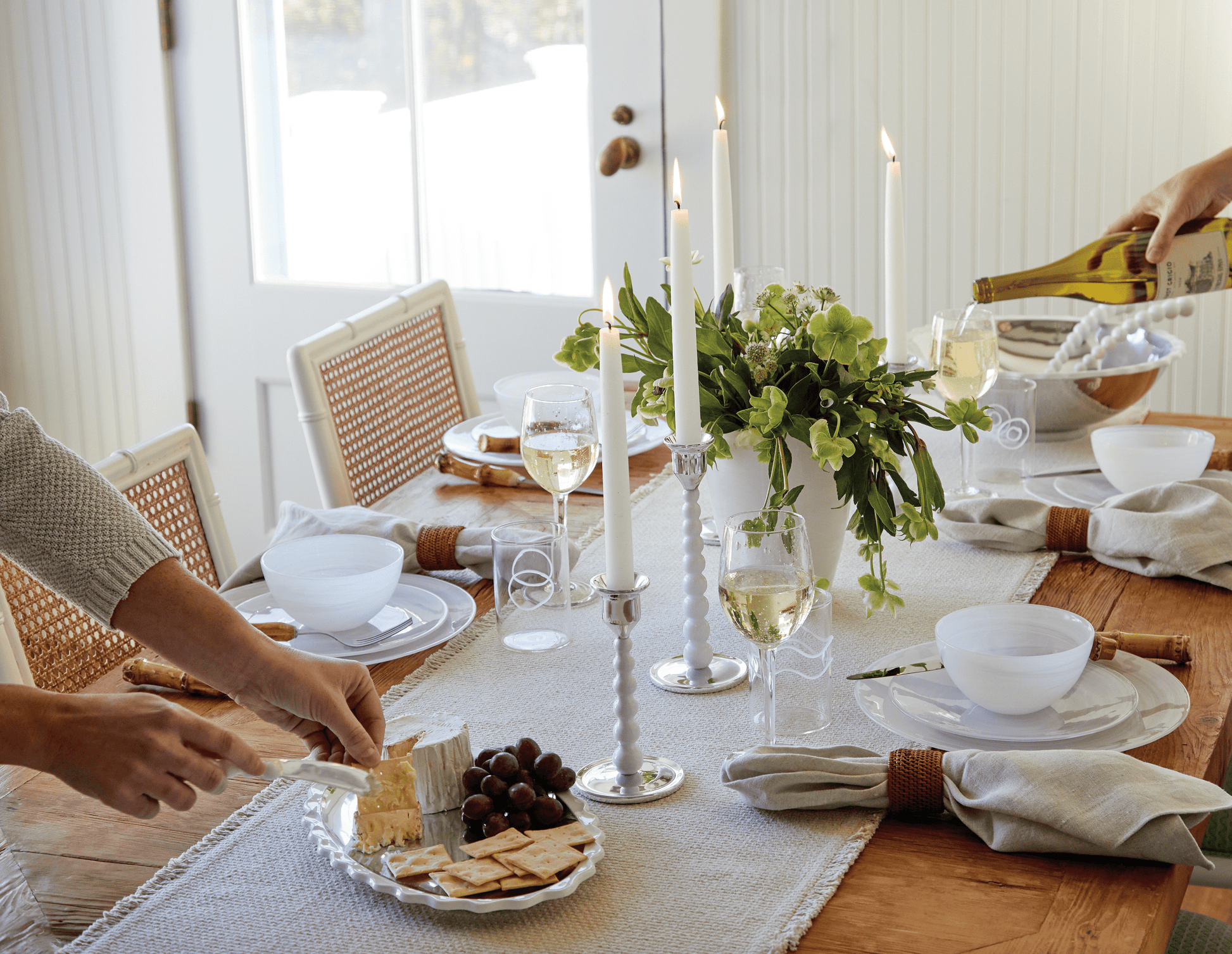 Transform your home into a haven of sophistication with our Pearled White Medium Candle Holder Set – where functional design meets timeless décor. Set includes 2 candle holders coated in a crisp white enamel. Handcrafted from 100% recycled aluminum.