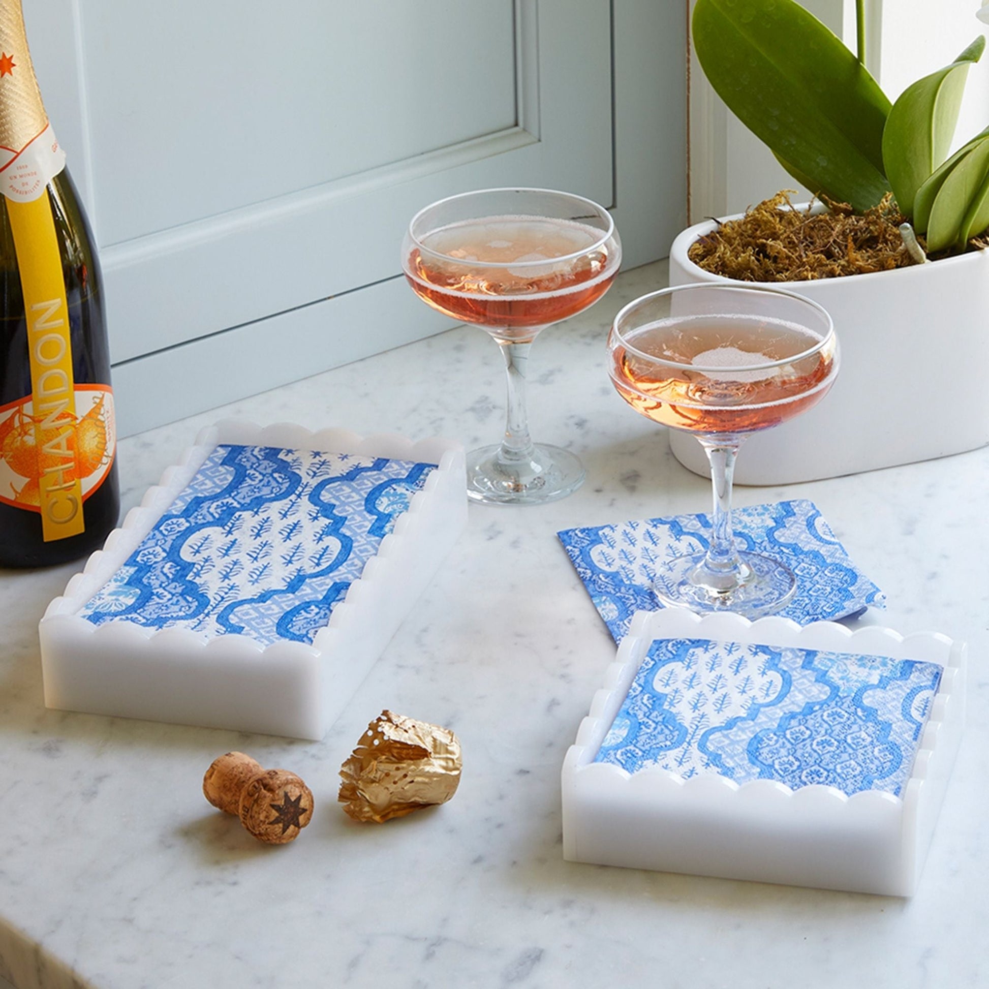 White Scalloped Guest Towel Box with Insert